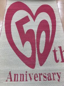 左のPDFデータ(法人50周年ロゴ)を基にい草で織り込みました。